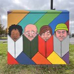 The Lifford Road traffic box had to be repainted 5 times due to repeated vandalism- originating from a male Garda seen directing traffic, to a female Garda, and finally to a piece featuring the local fish who inhabit the River Fergus. This piece is Don’t be afraid to swim against the tide, and is located at Lifford Road Electrical box located at traffic light crossing