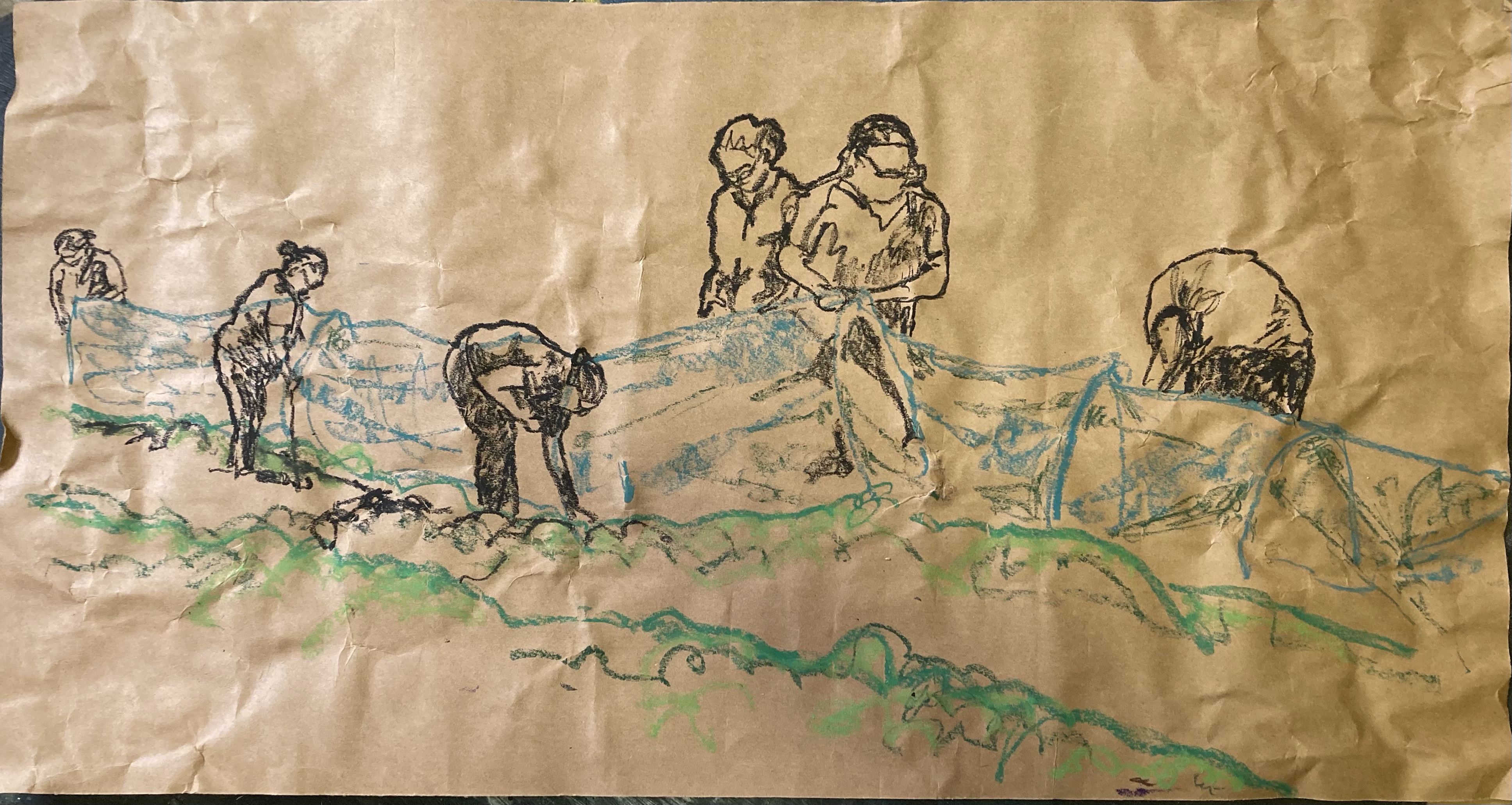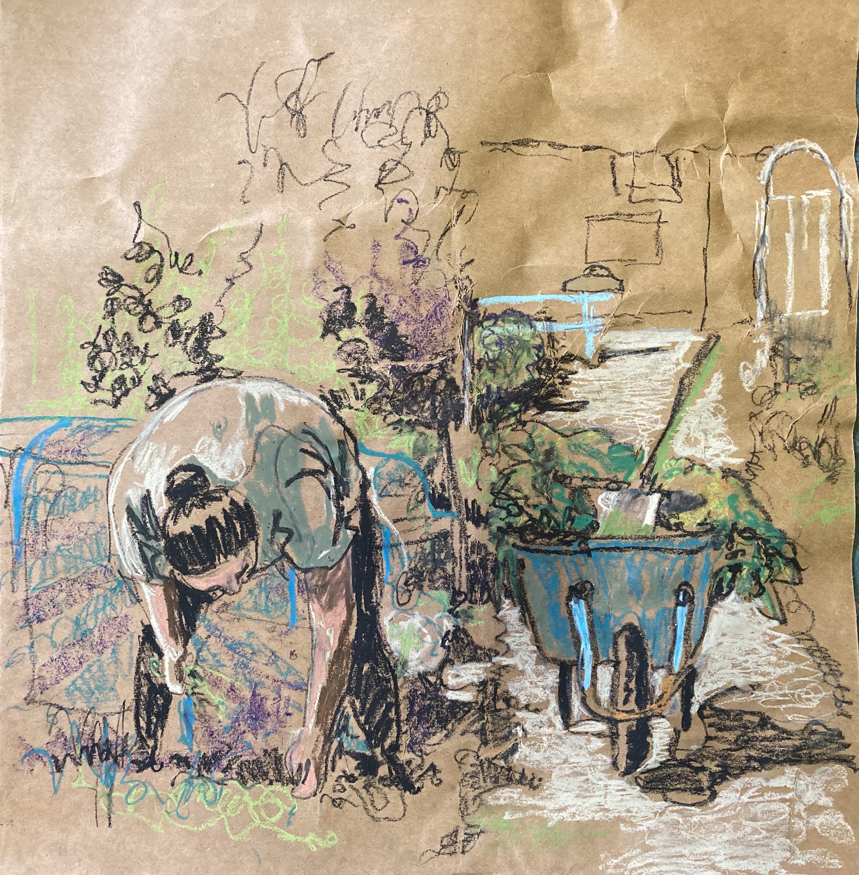 I wanted to work on some images which conveyed her movement. Her movement was constant and repetitive, bending, reaching, stopping, pulling, walking up and down. The other images are of her IN and AMONGTh her garden as she is the garden and who made the garden, the two entities go together in my research.