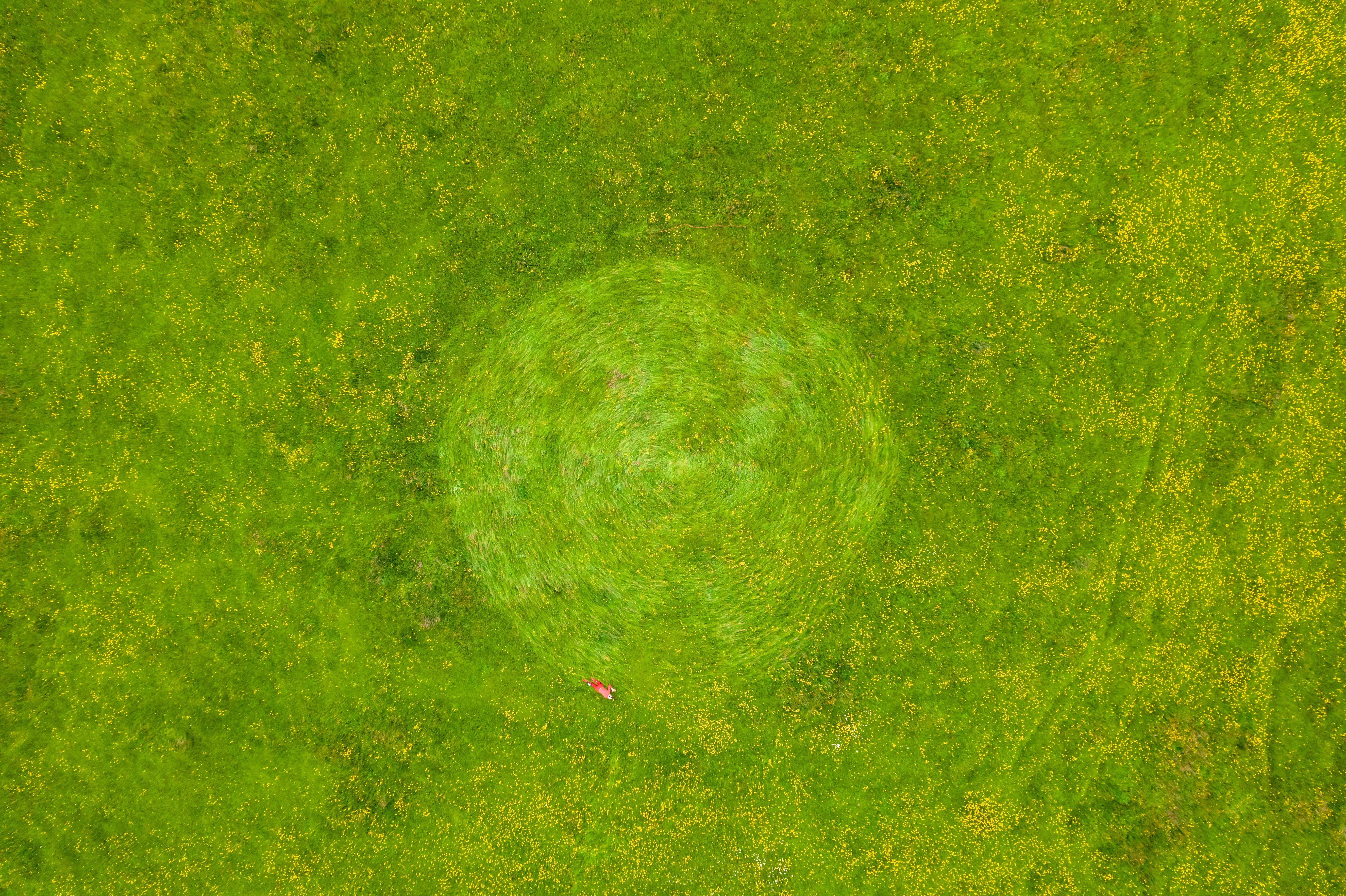 The result was rewarding though. I had indeed managed to create a crop circle like effect in the grass. In fairness also Paul, long time videographer, had suggested I start from the middle and work outward in an increasingly spiralling pattern. I had originally planned to start at the outside edge and repeat a trail around, going over one rail repeatedly so as to result in one circular mark. His idea was much better.