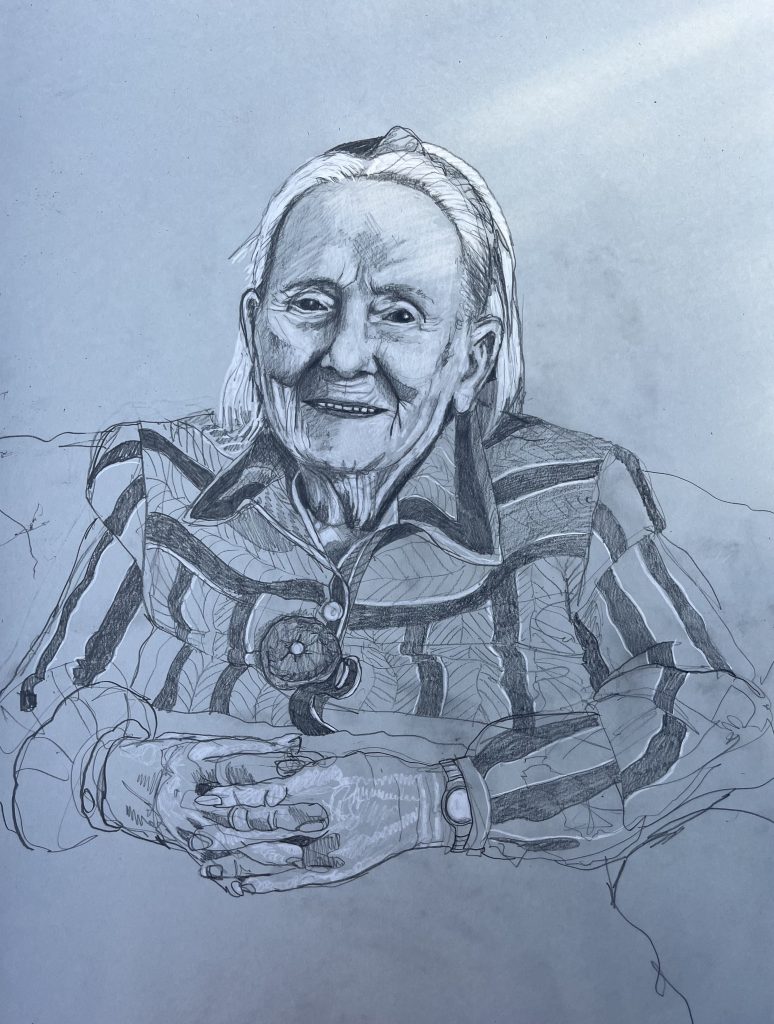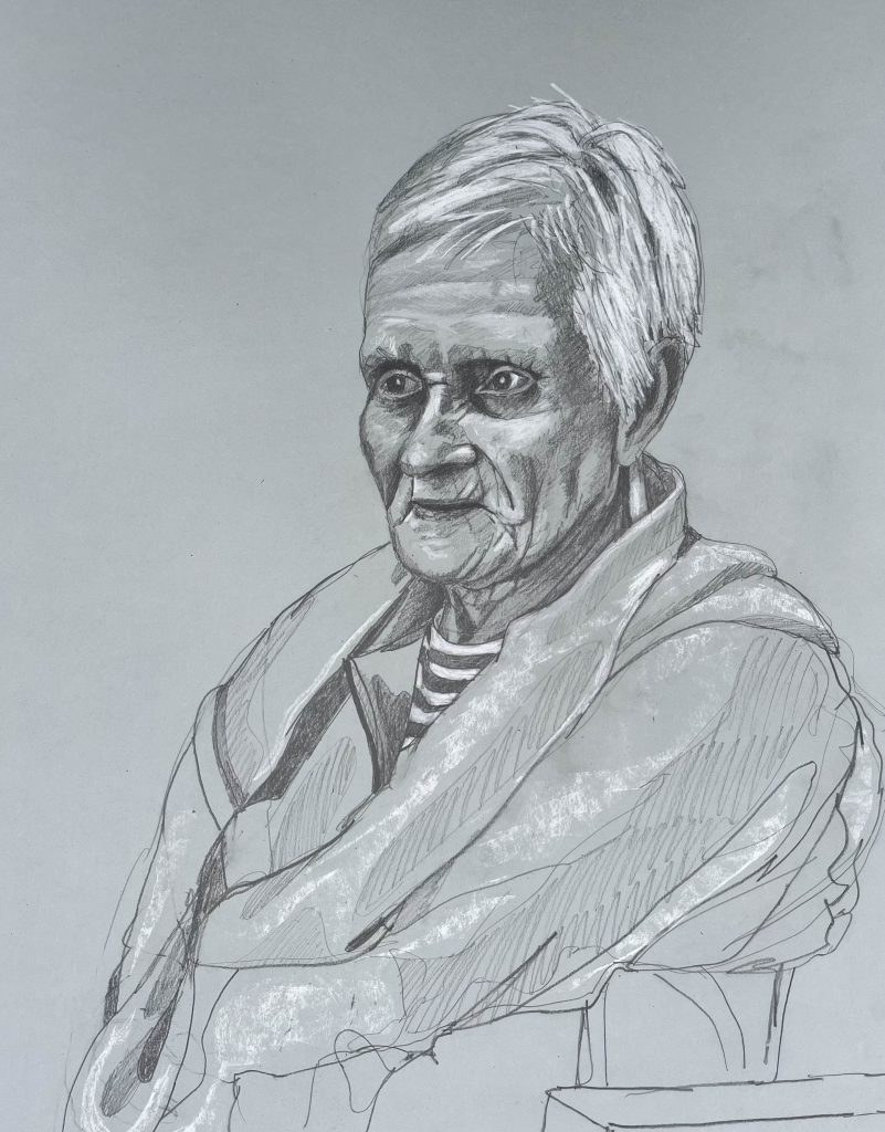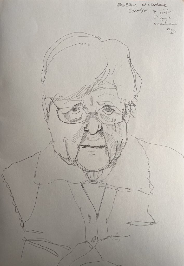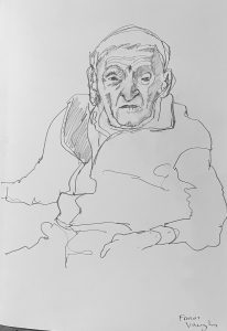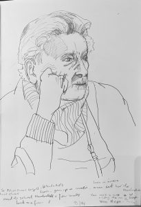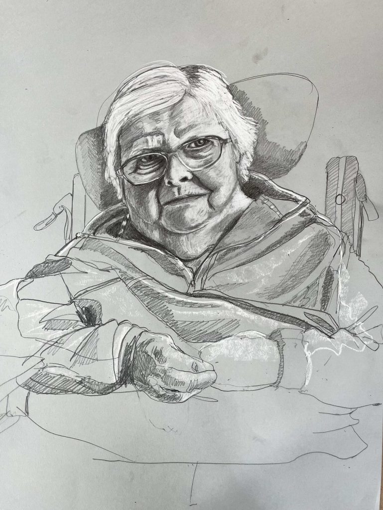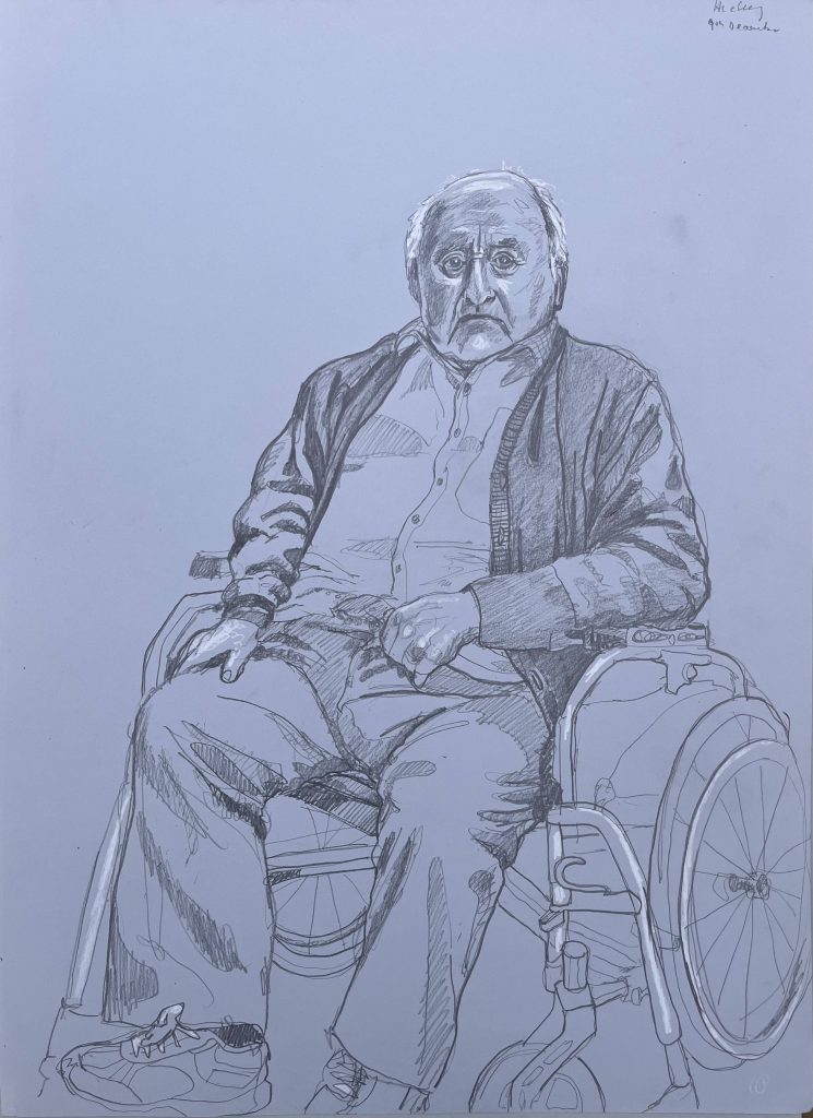 I am back in St Josephs Hospital drawing some of the patients. You are not supposed to refer to the occupants as residents as St Josephs is a hospital, not a nursing home. I started before Christmas, in December. Getting the correct vetting alone took months. Vetting is right and proper and necessary but I do with they would update the system as to how its administered here in Ireland. Getting the funding to do the work took even longer- it could have been a journey titled ‘Do not give up when you get lots of no’s’. However I was eventually fortunate enough to secure sufficient funding to start the project, through the good people at The Rural & Development Department of Clare County Council. Regarding access and vetting I had decided to just allow the elements over which I had no control to do their thing. It would happen when and if it was supposed to.