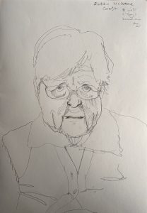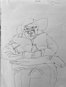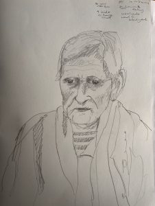 Its very poignant going int and meeting these people- their vulnerability is so obvious- it reminds me how important it is to do this right and to make sure everyone has agency and is treated with respect. The recording side of things is not going great- mainly because haven’t masters how to use the recording equipment at same time as drawing. But I’ve realised I can’t really do the two at once, The last few people I worked with have been quite deaf- so its not possible to talk to them casually and draw at the same time. I think I am going to have to thing of an alternative way to record the conversations. Perhaps if I visited each individual at the end with a set of questions and did it that way- only focusing on the recording. n
