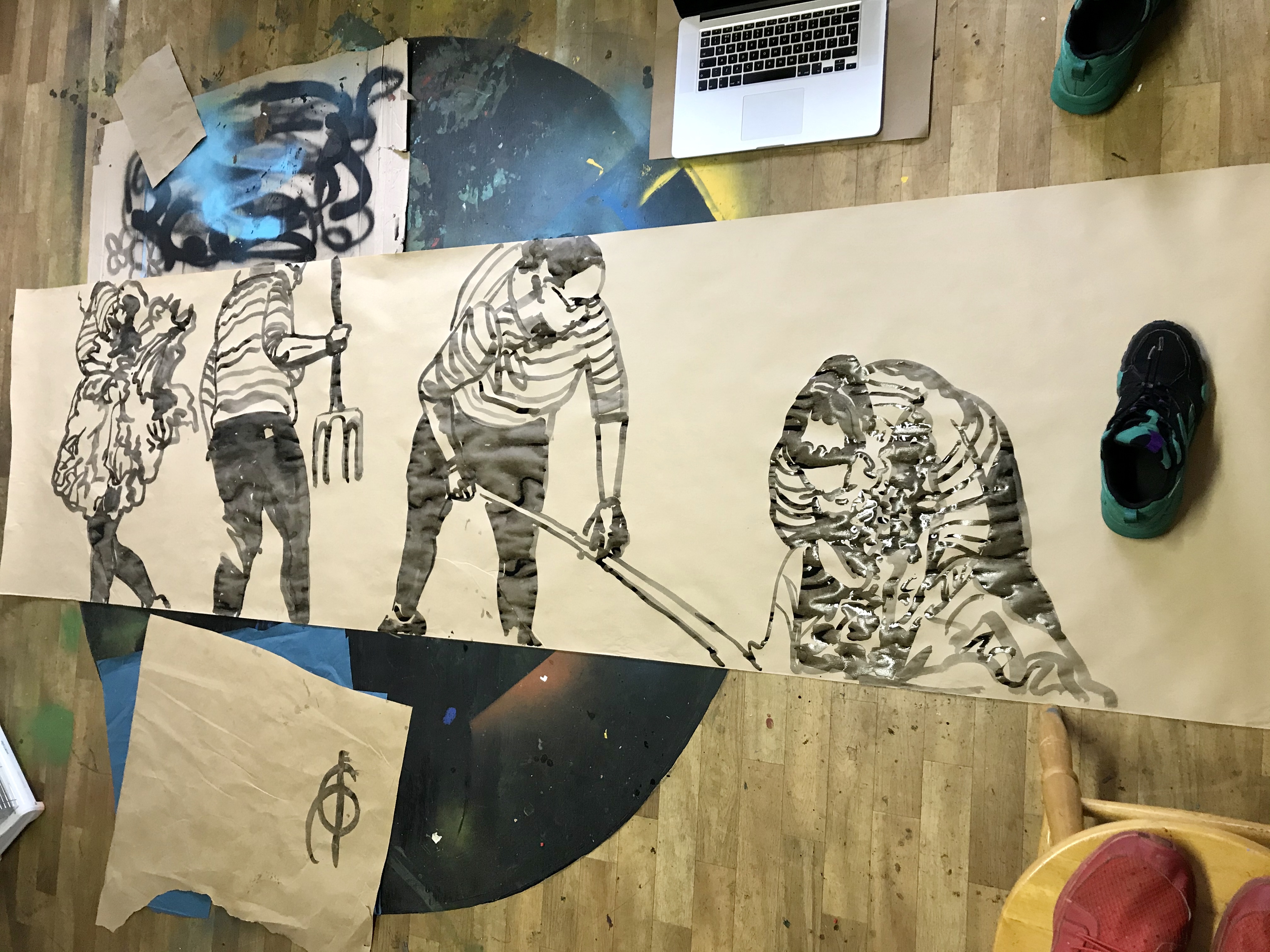 So this morning I got into the studio- I wanted to to try some ideas around the drawings id made on Thursday when I visited Carolin at her food garden in spanish point and Friday when I went to visit Veerla at home in Ballagh, Ennistymon.