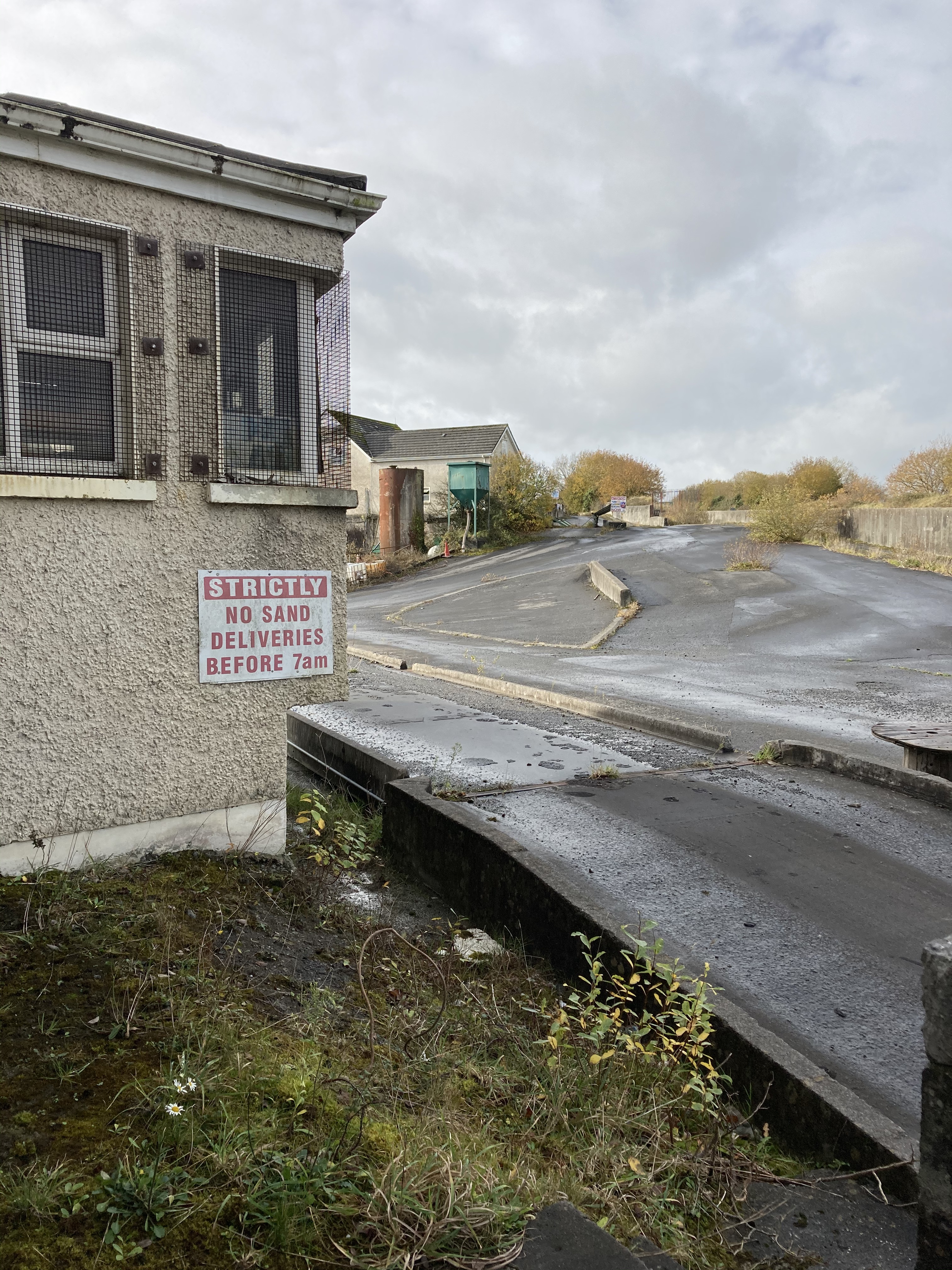 This is a quarry, now closed 10 years, on the Lahinch road, on way to Lahinch from Ennis. After many phone calls and the cumbersome process of obtaining new public liability insurance, I now am finally able to officially visit the space. I could have gone illicitly, and hopped in over the gate, but I wasn’t about to do that as could I have used the images afterwards if i’d gained access illegally? Also its a foreboding intimidating enough space without being there illegally. From the gate, it is huge, looming, ominous. You look in the office doors and see a space abandoned, derelict, literally. I am going there tomorrow morning at 8am, the guy who has the keys is meeting me there. That is weather permitting, as is everything these days. I plan to take pictures, make drawings. possibly shoot some video. I want to be by myself in the space and experience how that feels.